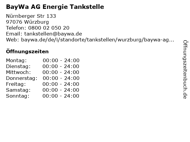 | Öffnungszeiten BayWa AG Energie Tankstelle in Würzburg anzeigen | |