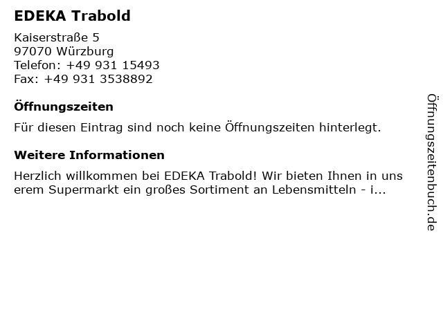 | Öffnungszeiten EDEKA Trabold in Würzburg anzeigen | |