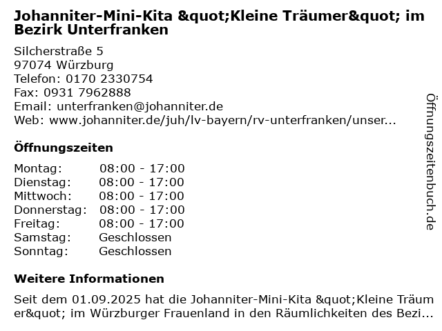 Branchen & Suchbegriffe zu Johanniter-Mini-Kita "Kleine Träumer" im Bezirk Unterfranken:"kleine, agentur für kinderbetreuung, bezirk, gemeinnützige organisation, hilfsorganisation, johanniter, kita, mini, sozialarbeit, träumer", unterfranken, verband, wohlfahrtseinrichtung |