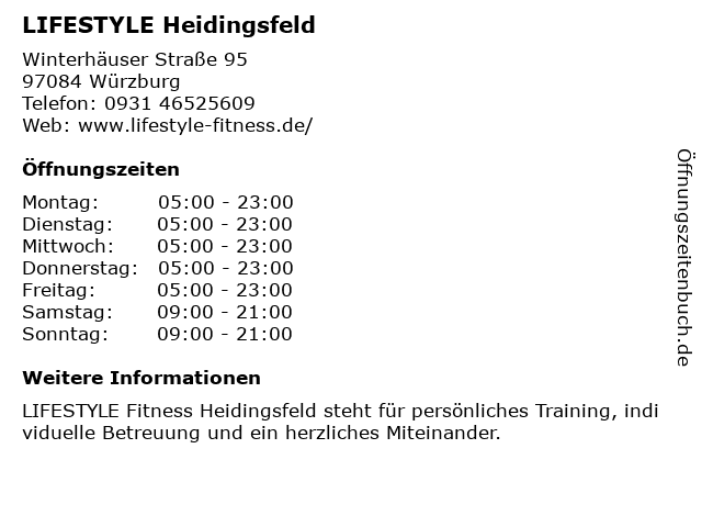 | Öffnungszeiten LIFESTYLE Heidingsfeld in Würzburg anzeigen | |