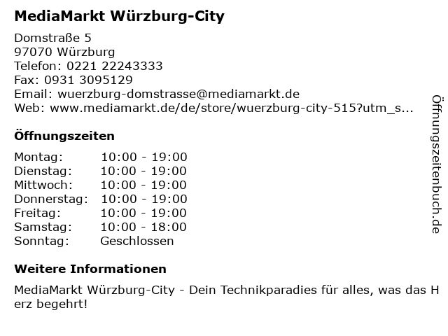 Öffnungszeiten MediaMarkt Würzburg-City in Würzburg anzeigen | |
