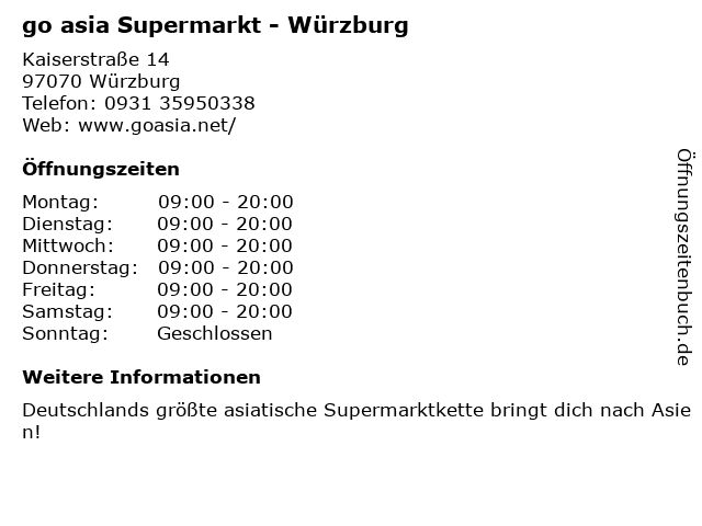 Branchen & Suchbegriffe zu go asia Supermarkt - Würzburg:asia, go, supermarkt, supermärkte |