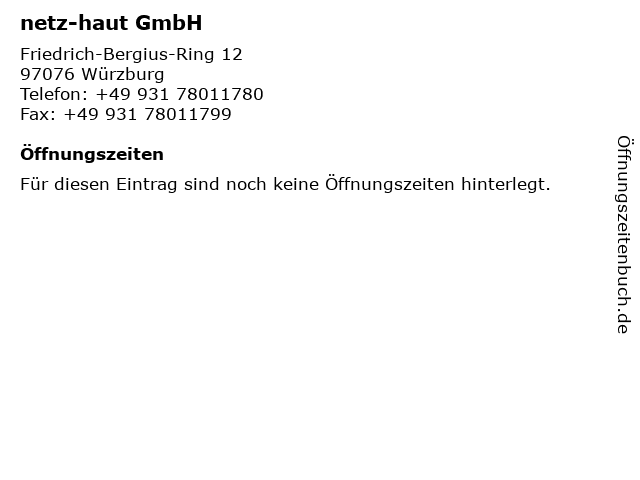 | Öffnungszeiten netz-haut GmbH in Würzburg anzeigen | |