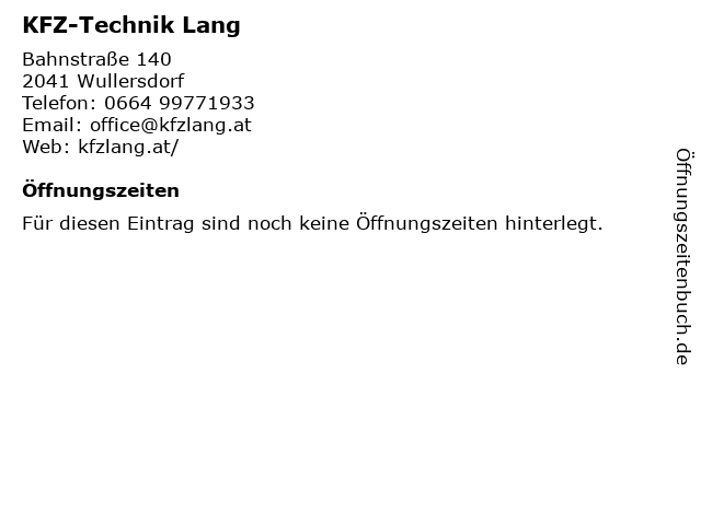 | Öffnungszeiten KFZ-Technik Lang in Wullersdorf anzeigen | |