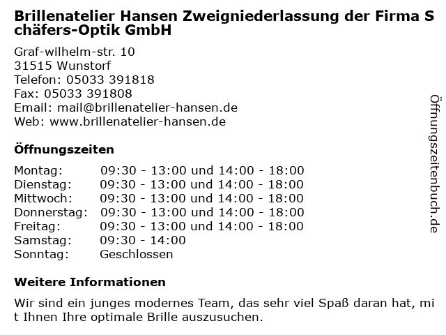 Branchen & Suchbegriffe zu Brillenatelier Hansen Zweigniederlassung der Firma Schäfers-Optik GmbH:brillenatelier, hansen, optik, schäfers, zweigniederlassung |