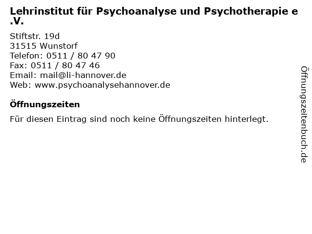 | Lehrinstitut für Psychoanalyse und Psychotherapie e.V. anrufen | |