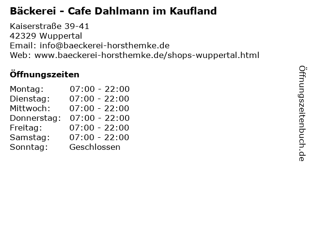 Bäckerei - Cafe Dahlmann im Kaufland in Wuppertal | Telefonnummer, Öffnungszeiten und Adresse