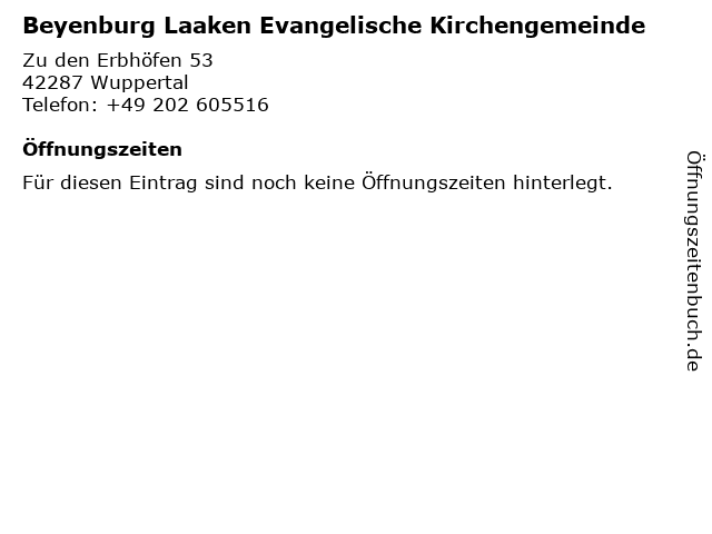 | Beyenburg Laaken Evangelische Kirchengemeinde anrufen | |
