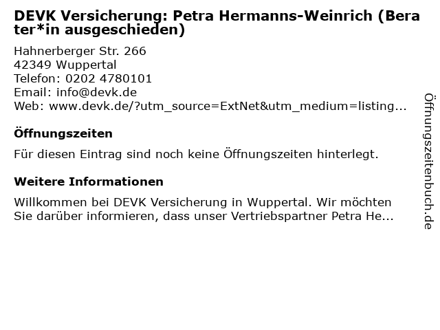 | DEVK Versicherung: Petra Hermanns-Weinrich (Berater*in ausgeschieden) anrufen | |