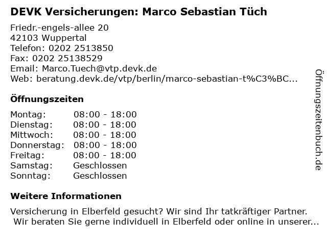 2 DEVK Versicherung: AKS Beratungs- & Vermittlungs GmbH (Entfernung: 0,00 km) Friedr.-Engels-Allee 20, 42103 Wuppertal 3 DEVK Versicherung: AKS Beratungs- & Vermittlungs GmbH (Entfernung: 0,01 km) Friedrich-Engels-Allee 20, 42103 Wuppertal 4 DEVK Versicherungen Regionaldirektion Wuppertal (Entfernung: 0,01 km) Friedrich-Engels-Allee 20, 42103 Wuppertal 5 SIGNAL IDUNA Versicherung Marco Heil - Versicherungsagentur (Entfernung: 0,33 km) Haspeler Str. 6, 42285 Wuppertal 6 Barmenia Versicherung - Agentur Sebastian Tüch (Entfernung: 0,66 km) Barmenia-allee 1, 42119 Wuppertal |