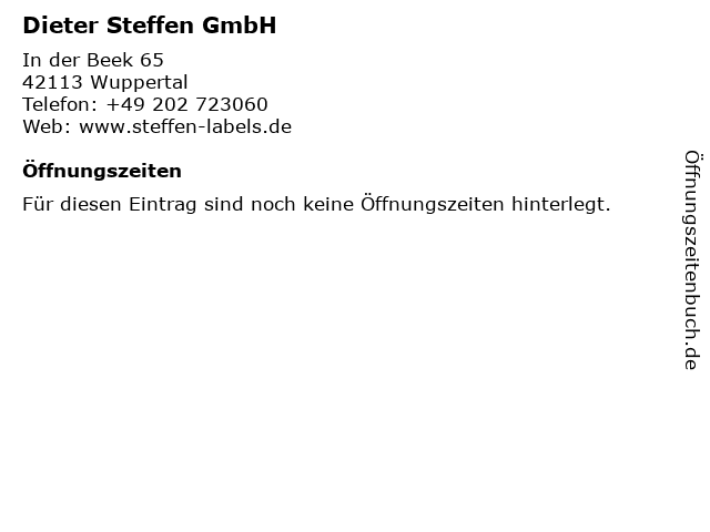 | Öffnungszeiten Dieter Steffen GmbH in Wuppertal anzeigen | |