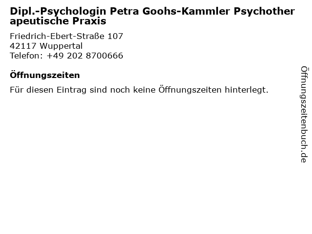 | Dipl.-Psychologin Petra Goohs-Kammler Psychotherapeutische Praxis anrufen | |