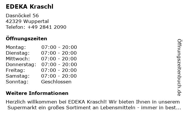 | Öffnungszeiten EDEKA Kraschl in Wuppertal anzeigen | |