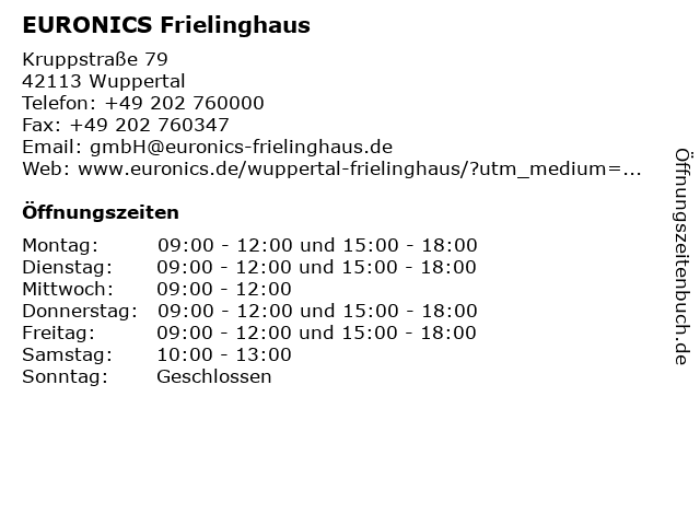 | Öffnungszeiten EURONICS Frielinghaus in Wuppertal anzeigen | |