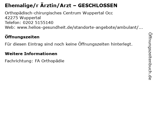 1 Ehemalige/r Ärztin/Arzt – GESCHLOSSEN (Entfernung: 0,00 km) Orthopädisch-chirurgisches Centrum Wuppertal Occ , 42275 Wuppertal 2 Ehemalige/r Ärztin/Arzt – GESCHLOSSEN (Entfernung: 0,01 km) Orthopädisch-chirurgisches Centrum Wuppertal Occ , 42275 Wuppertal 3 Ehemalige/r Ärztin/Arzt – GESCHLOSSEN (Entfernung: 0,98 km) Helios Mvz Dgu Die Gesundheitsunion Gmbh , 42275 Wuppertal 4 Ehemalige/r Ärztin/Arzt – GESCHLOSSEN (Entfernung: 1,66 km) Helios Mvz Dgu Die Gesundheitsunion , 42283 Wuppertal 5 Ehemalige/r Ärztin/Arzt – GESCHLOSSEN (Entfernung: 10,07 km) Helios Mvz Chirurgie Remscheid Trägerschaft Mvz Dgu Die Gesundheitsunion , 42853 Remscheid 6 Ehemalige/r Ärztin/Arzt – GESCHLOSSEN (Entfernung: 10,07 km) Helios Mvz Chirurgie Remscheid Trägerschaft Mvz Dgu Die Gesundheitsunion , 42853 Remscheid |