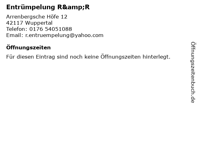 | Öffnungszeiten Entrümpelung R&R in Wuppertal anzeigen | |