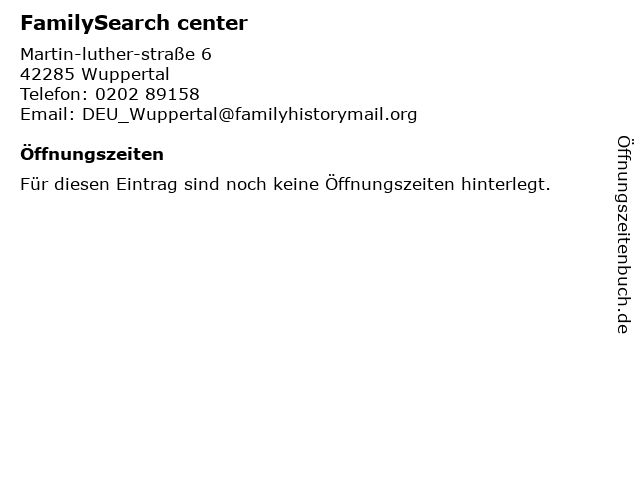 | Öffnungszeiten FamilySearch center in Wuppertal anzeigen | |