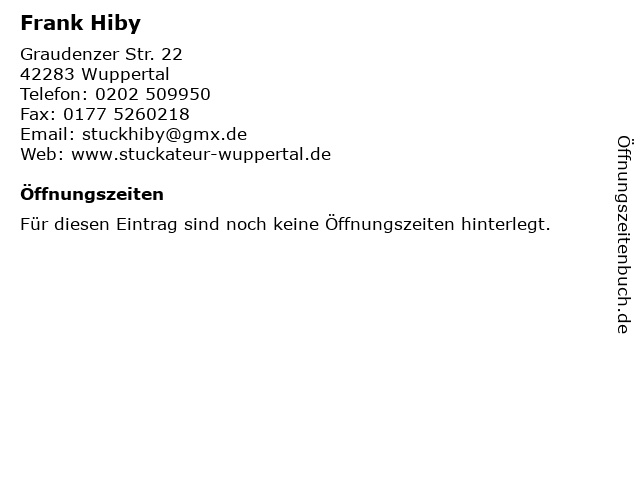 | Öffnungszeiten Frank Hiby in Wuppertal anzeigen | |