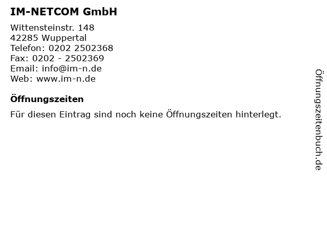 | Öffnungszeiten IM-NETCOM GmbH in Wuppertal anzeigen | |