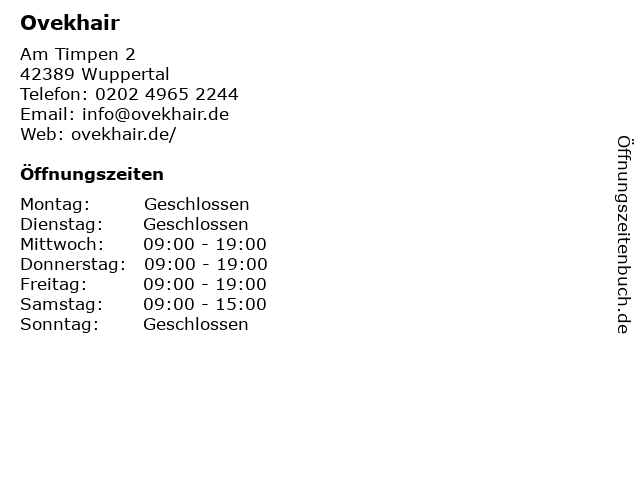 | Öffnungszeiten Ovekhair in Wuppertal anzeigen | |