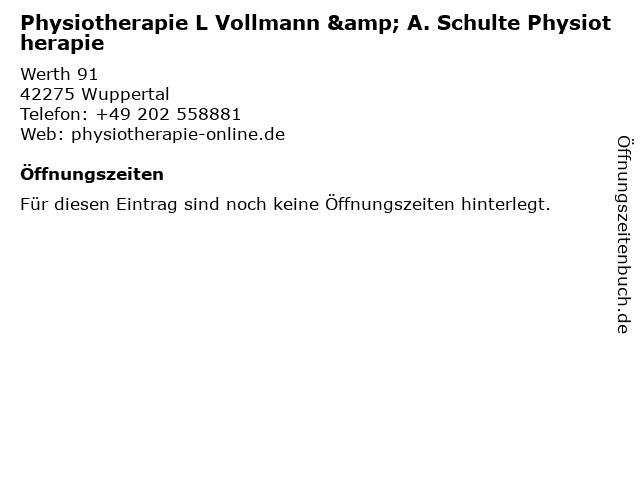| Physiotherapie L Vollmann & A. Schulte Physiotherapie anrufen | |