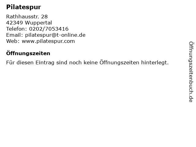| Öffnungszeiten Pilatespur in Wuppertal anzeigen | |