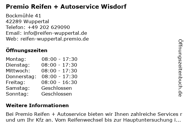 2 3 Cartex Autoservice GmbH Autoreparaturen (Entfernung: 5,24 km) Friedrich-Engels-Allee 4, 42103 Wuppertal 5 Premio Reifen + Autoservice Reifen Baack GmbH (Entfernung: 6,99 km) Lüttringhauser Straße 155, 42899 Remscheid 6 |
