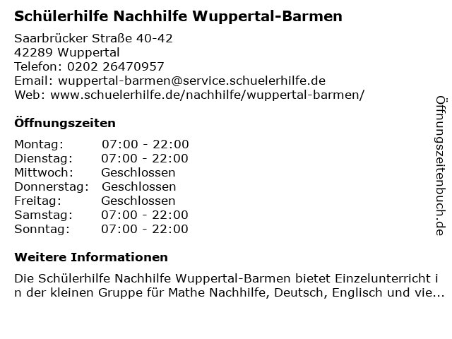 Branchen & Suchbegriffe zu Schülerhilfe Nachhilfe Wuppertal-Barmen:barmen, bildungszentrum, nachhilfe, schülerhilfe |