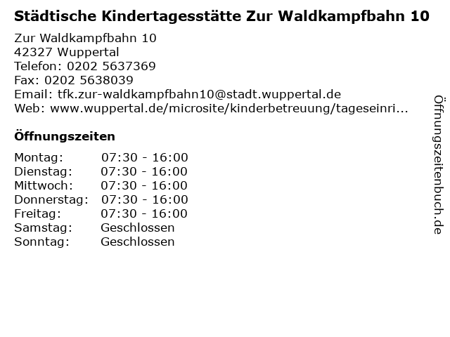 2 Städtische Kindertagesstätte Vohwinkeler Feld 40 (Entfernung: 0,42 km) Vohwinkeler Feld 40, 42327 Wuppertal 4 Städtische Kindertagesstätte Edith-Stein-Straße 65 (Entfernung: 0,75 km) Edith - Stein - Str. 65, 42329 Wuppertal 5 Städtische Kindertagesstätte Ehrenhainstr. 1 a (Entfernung: 0,90 km) Ehrenhainstr. 1a, 42329 Wuppertal 6 |