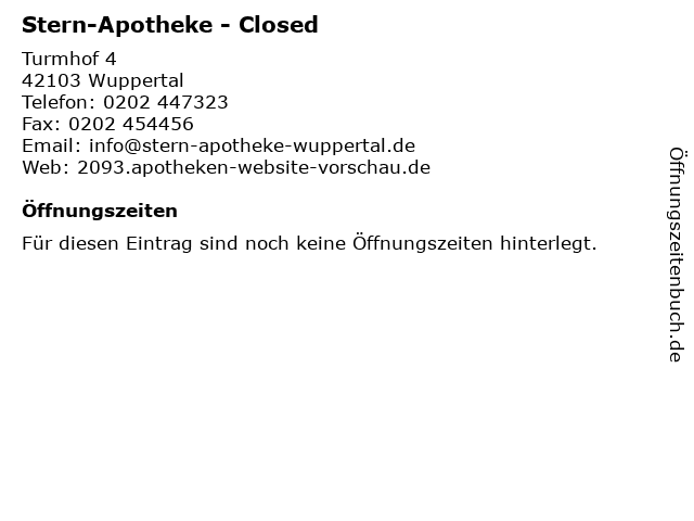 | Öffnungszeiten Stern-Apotheke - Closed in Wuppertal anzeigen | |