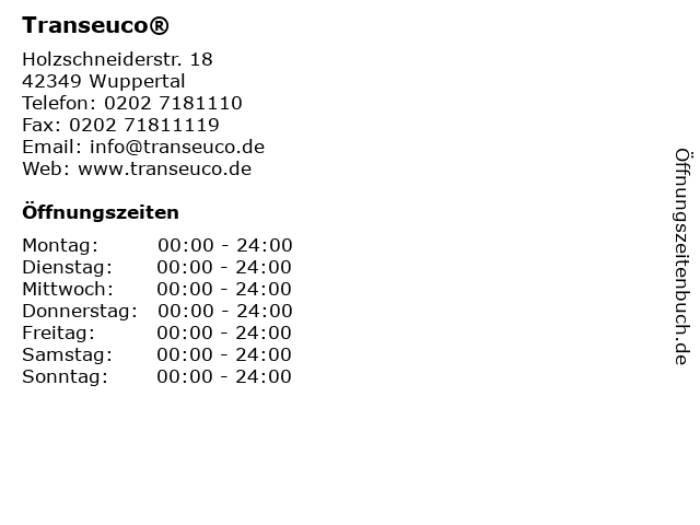 | Öffnungszeiten Transeuco® in Wuppertal anzeigen | |