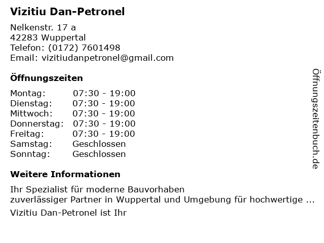| Öffnungszeiten Vizitiu Dan-Petronel in Wuppertal anzeigen | |