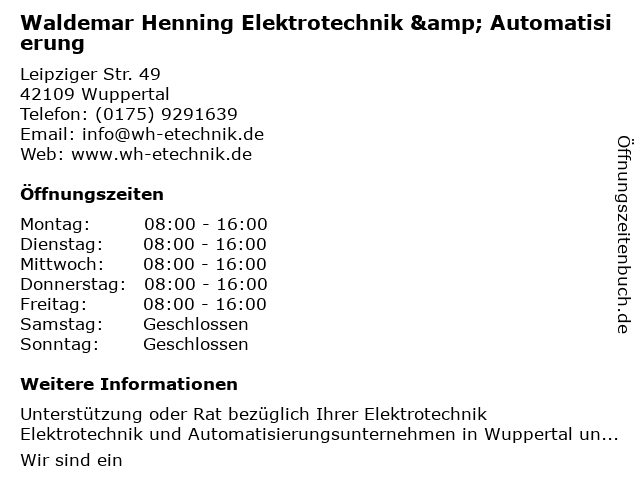 1 Elektro-Sturm Ges. für Elektrotechnik u. Elektronik m.b.H. (Entfernung: 0,44 km) Uellendahler Str. 312 A, 42109 Wuppertal 4 e-tec Ingenieurgesellschaft für Elektrotechnik GmbH (Entfernung: 1,24 km) Uellendahler Str. 477, 42109 Wuppertal 6 |