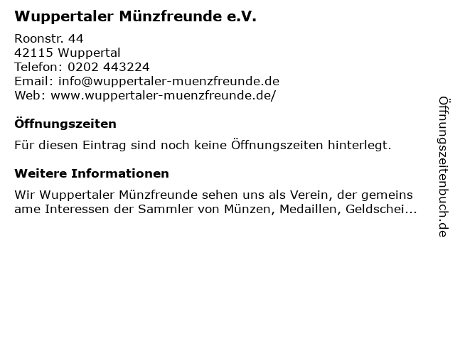 Branchen & Suchbegriffe zu Wuppertaler Münzfreunde e.V.:e.v., münzfreunde, wuppertaler |