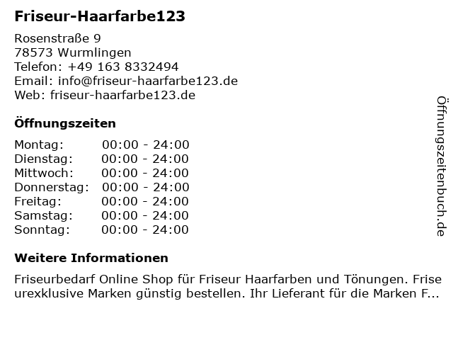 | Öffnungszeiten Friseur-Haarfarbe123 in Wurmlingen anzeigen | |