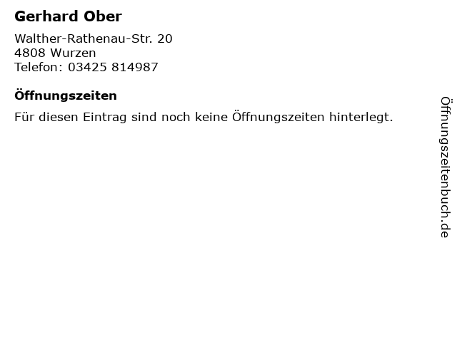 | Öffnungszeiten Gerhard Ober in Wurzen anzeigen | |
