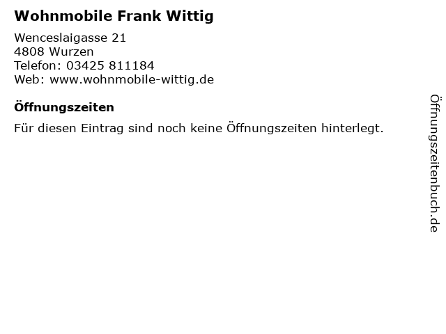 | Öffnungszeiten Wohnmobile Frank Wittig in Wurzen anzeigen | |
