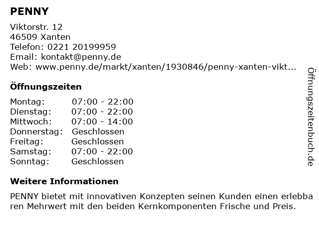 | Öffnungszeiten PENNY in Xanten anzeigen | |