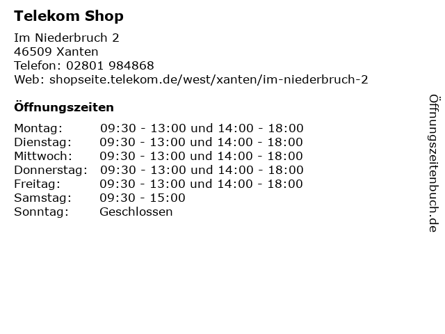 | Öffnungszeiten Telekom Shop in Xanten anzeigen | |