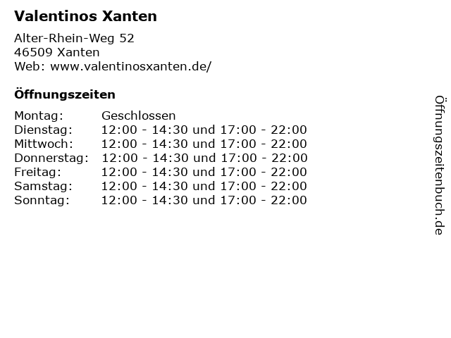 | Öffnungszeiten Valentinos Xanten in Xanten anzeigen | |