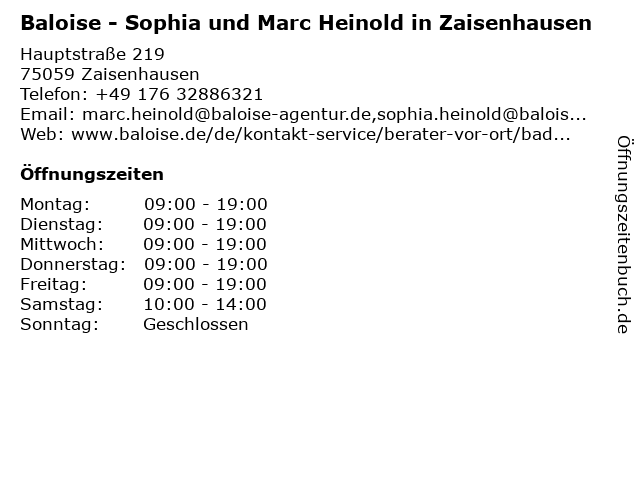 Branchen & Suchbegriffe zu Baloise - Sophia und Marc Heinold in Zaisenhausen:baloise, heinold, marc, sophia, zaisenhausen |