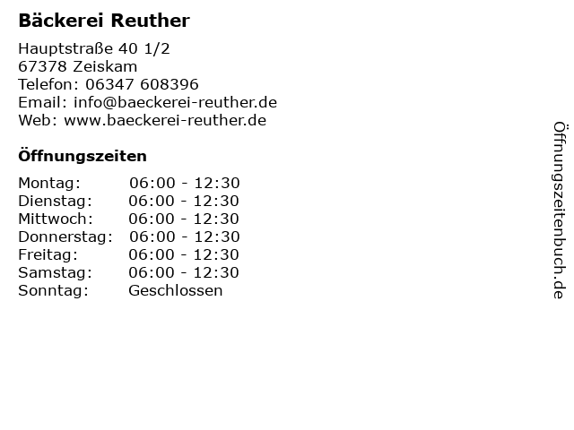 | Öffnungszeiten Bäckerei Reuther in Zeiskam anzeigen | |