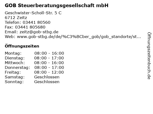 GOB Steuerberatungsgesellschaft mbH in Zeitz: Telefonnummer, Öffnungszeiten und Adresse