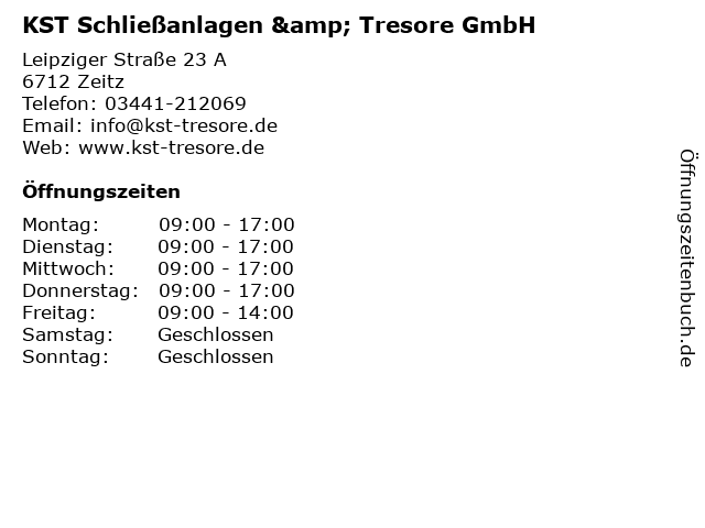 2 Schlüsseldienst TÜVO 24h Schloßservice + Schließanlagen (Entfernung: 2,90 km) Am Kalktor , 06712 Zeitz 3 Die Panzerknacker Schlüsseldienst 24 Std. Tresore Überwachungsanlagen Türen e. K. (Entfernung: 18,59 km) Steinbeckstr. , 07552 Gera 6 |