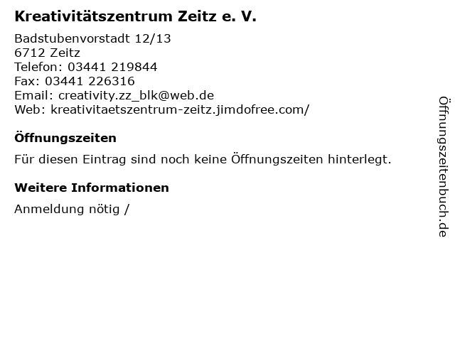 | Kreativitätszentrum Zeitz e. V. anrufen | |