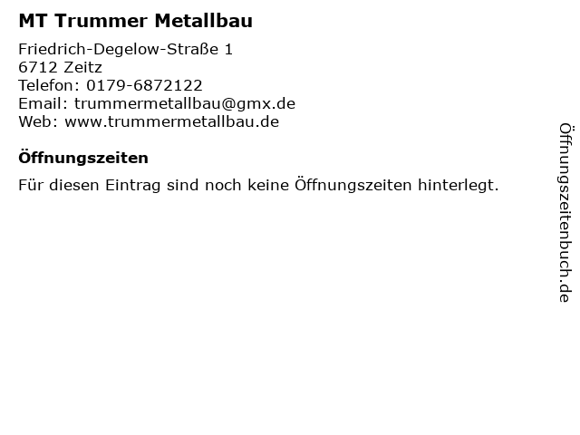 | Öffnungszeiten MT Trummer Metallbau in Zeitz anzeigen | |