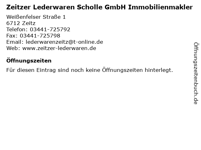 | Zeitzer Lederwaren Scholle GmbH Immobilienmakler anrufen | |