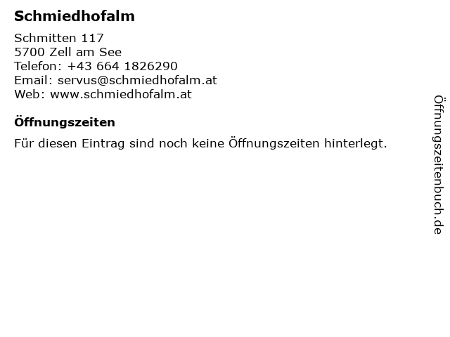 | Öffnungszeiten Schmiedhofalm in Zell am See anzeigen | |