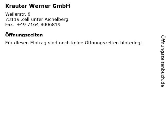 | Öffnungszeiten Krauter Werner GmbH in Zell unter Aichelberg anzeigen | |