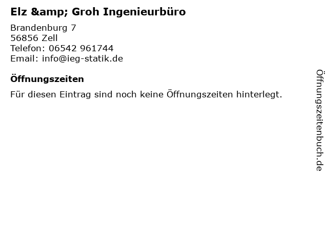 | Öffnungszeiten Elz & Groh Ingenieurbüro in Zell anzeigen | |